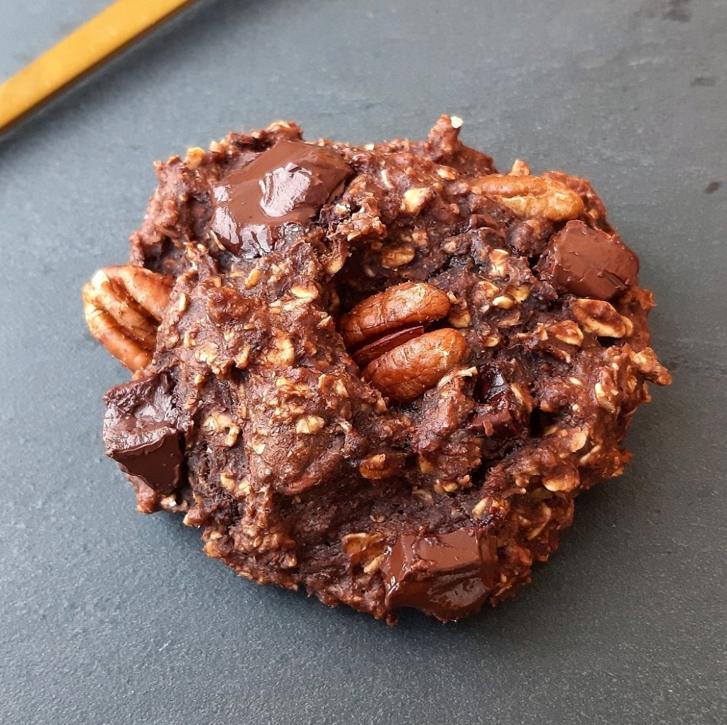 Mélange tous les ingrédients, mets de côté quelques pépites et noix. Mets en forme tes cookies et ajoute les pépites et noix de pécan sur le dessus et enfourne pendant 10 mins sur 180°.