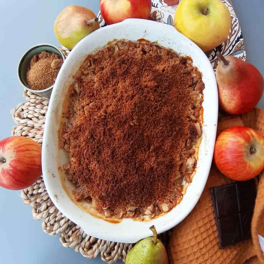 obtenir la bonne consistance (effet grumeleux sablé). Recouvre tes fruits avec la préparation et enfourne 20 mins à 210°.