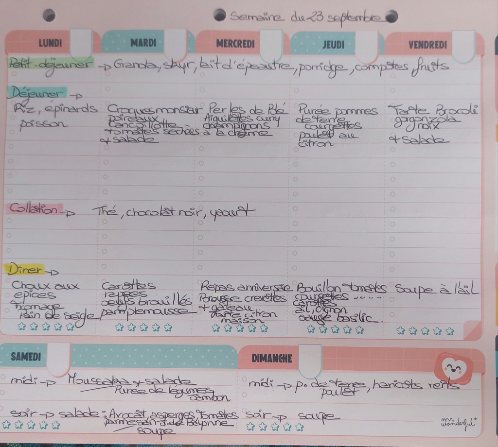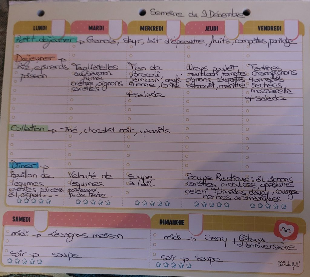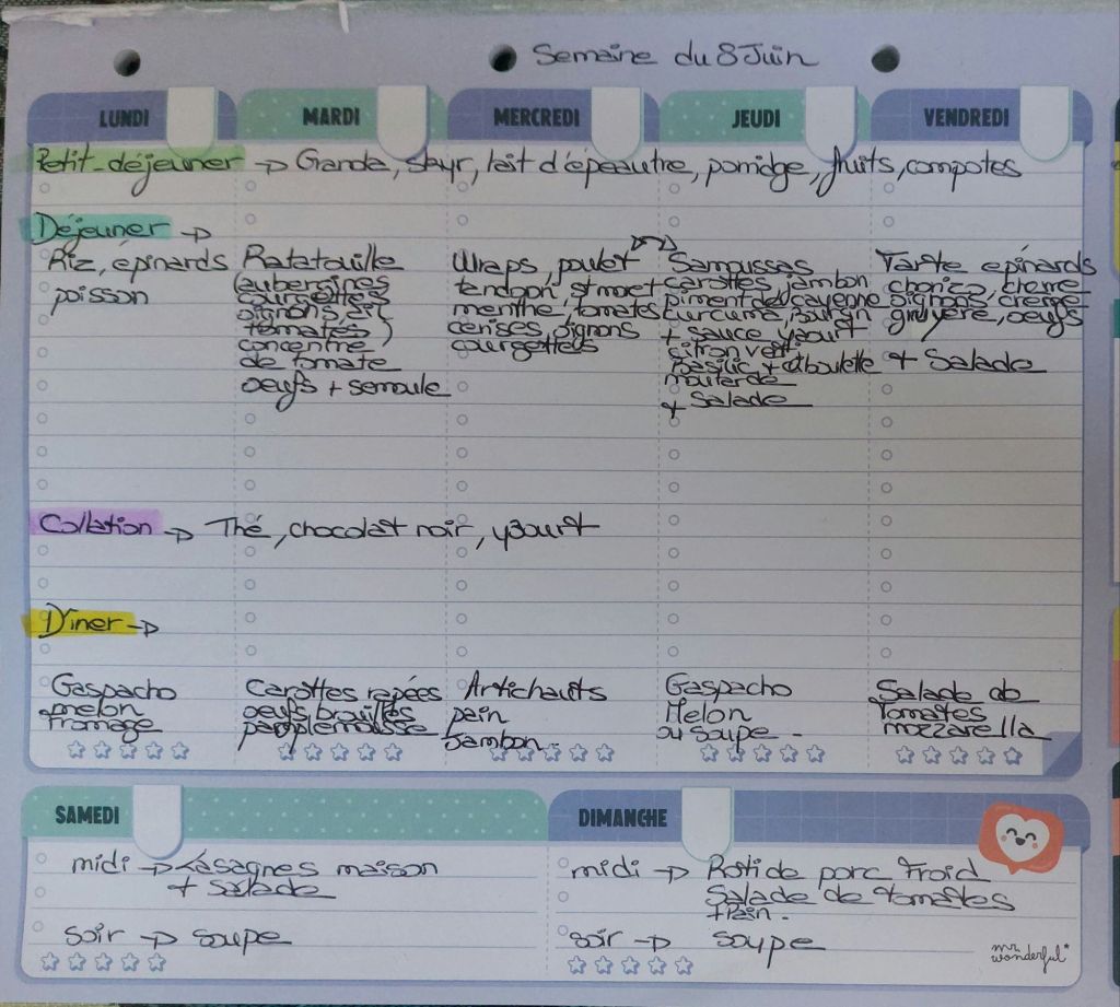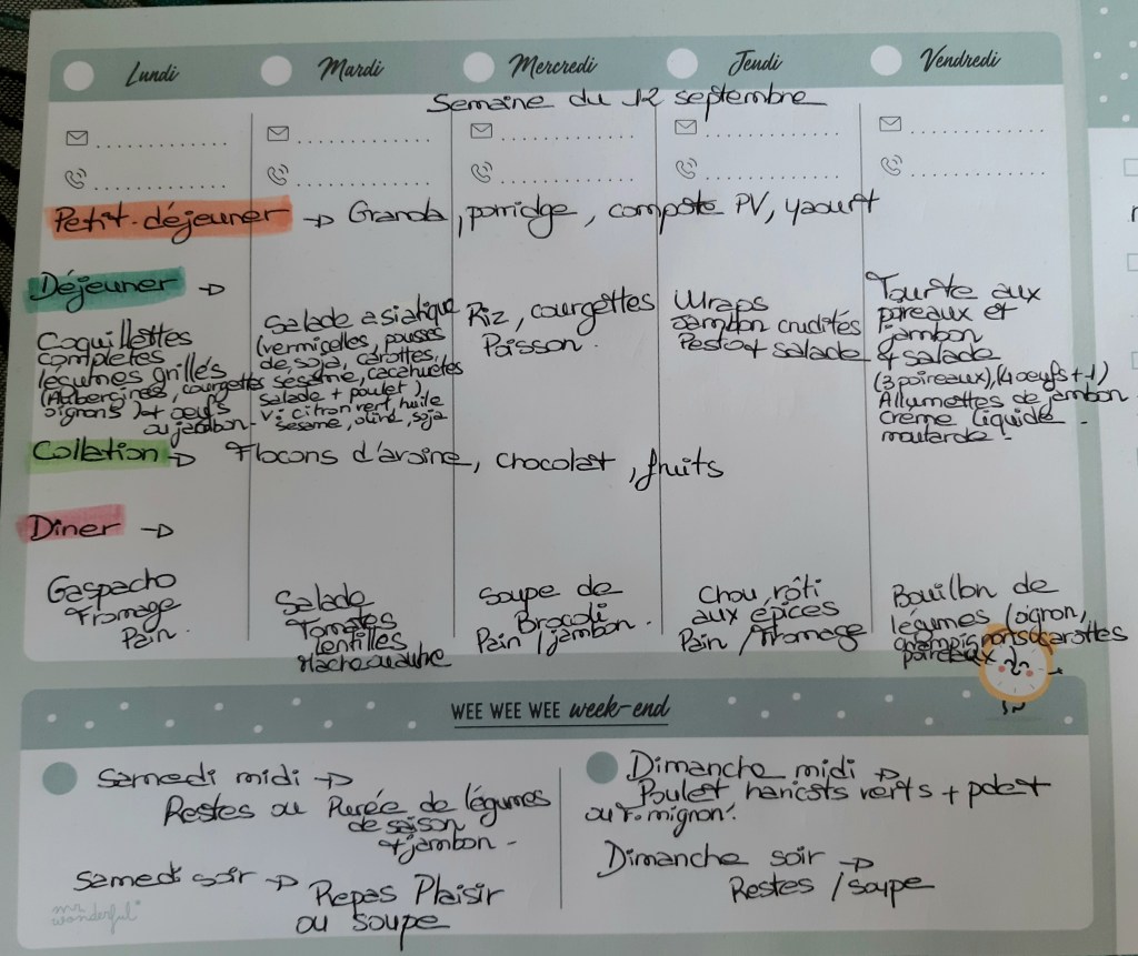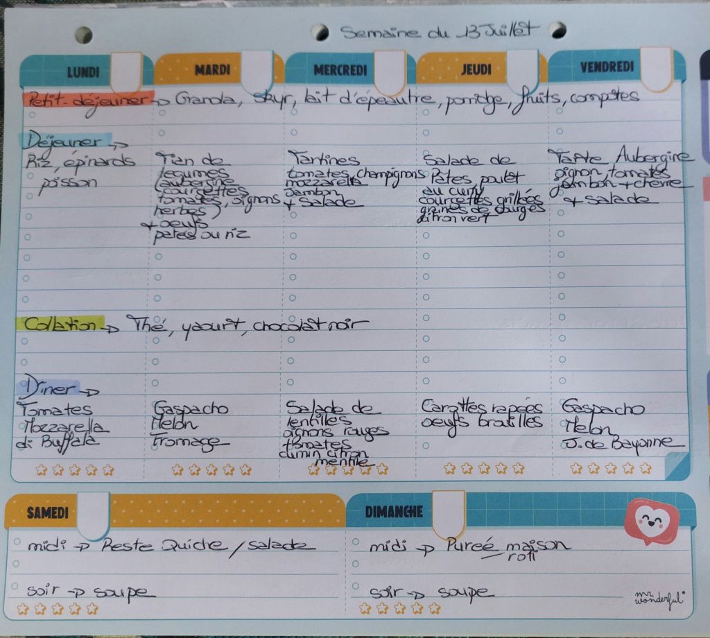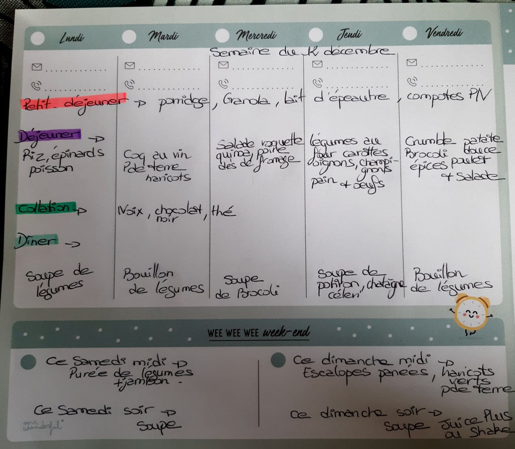Pour créer mes menus, j’ai un semainier de la marque Mr Wonderful, il est pratique et permet de visualiser ta semaine en un clin d’œil !😉
