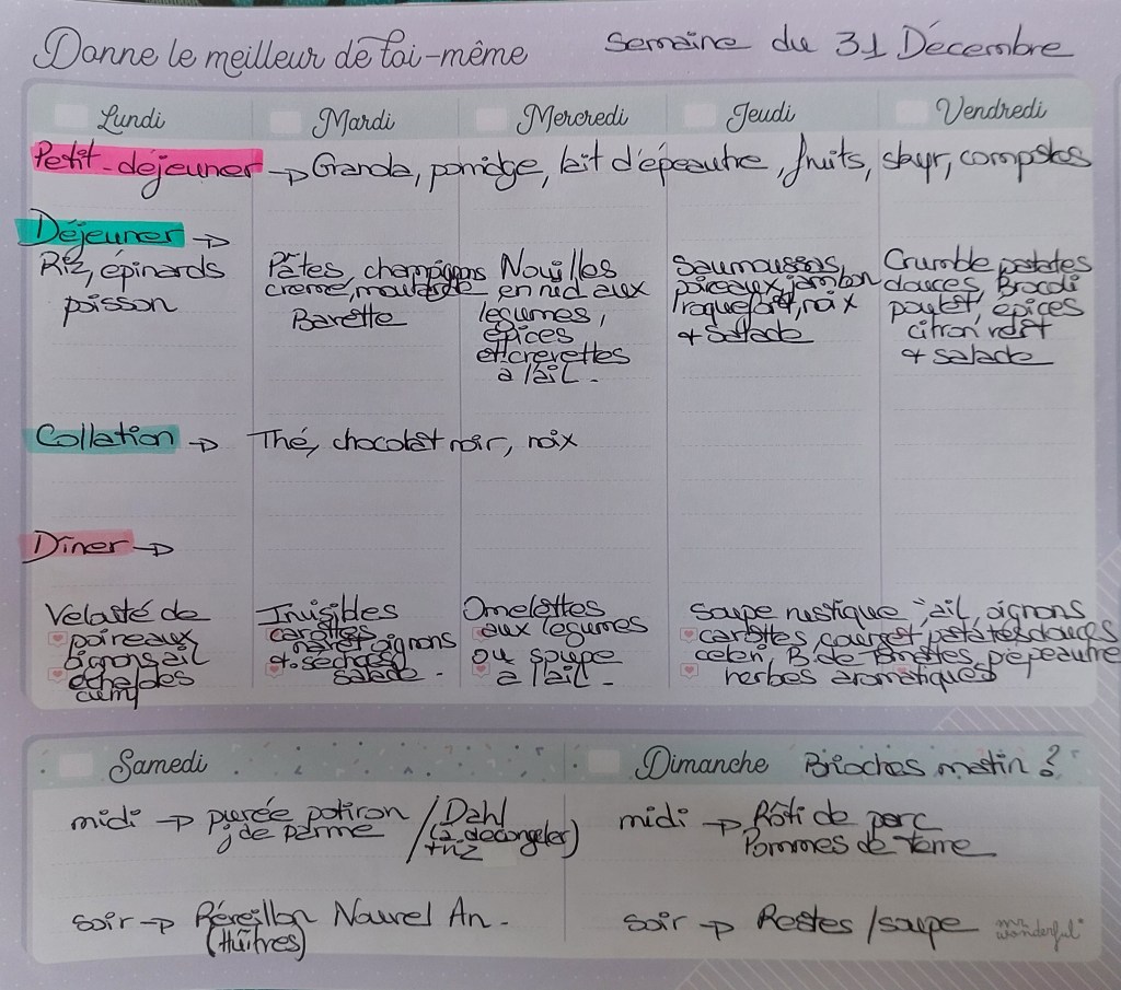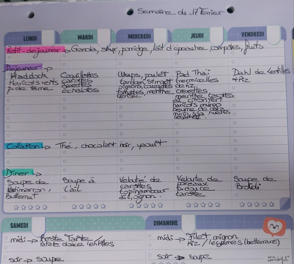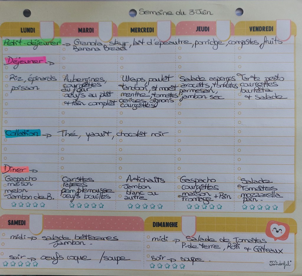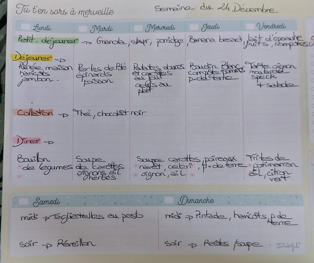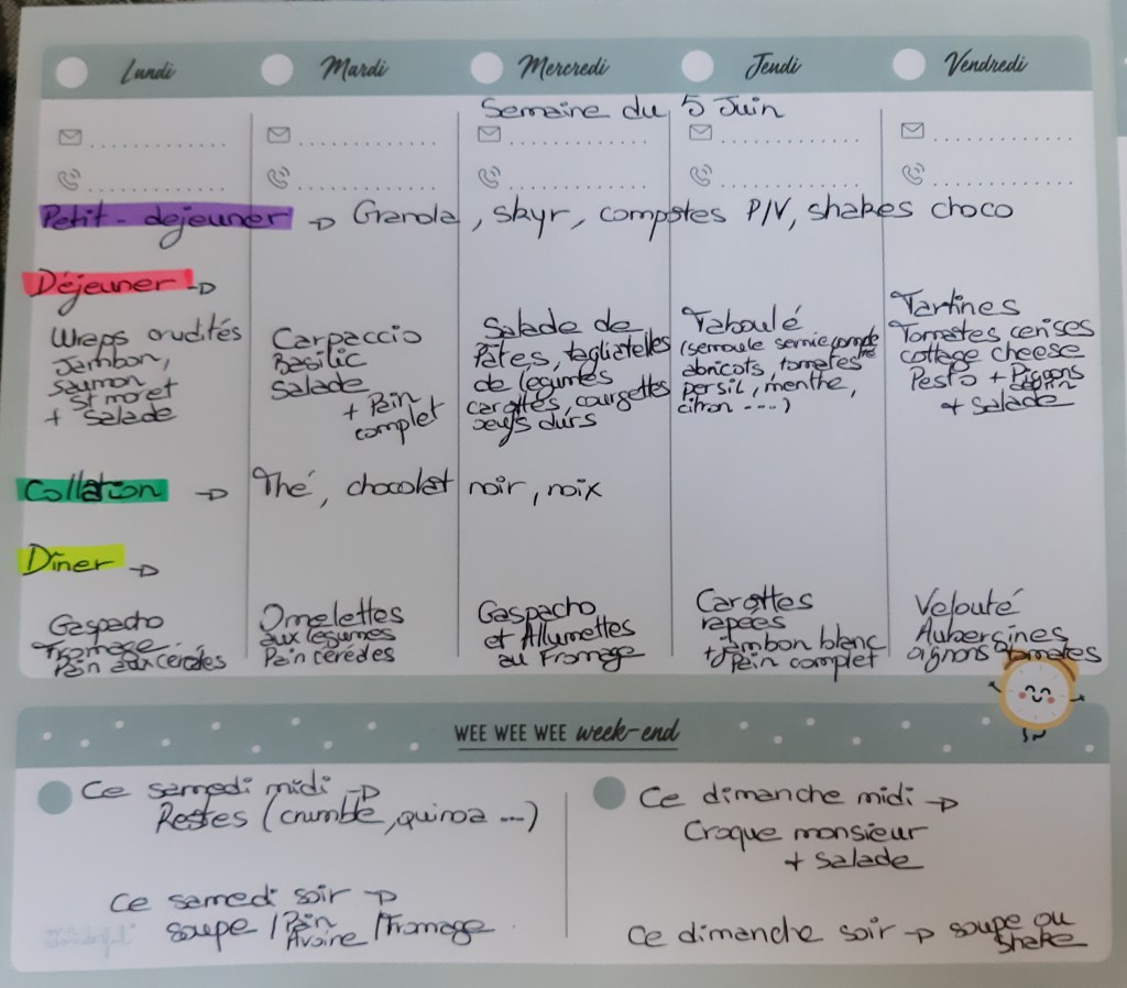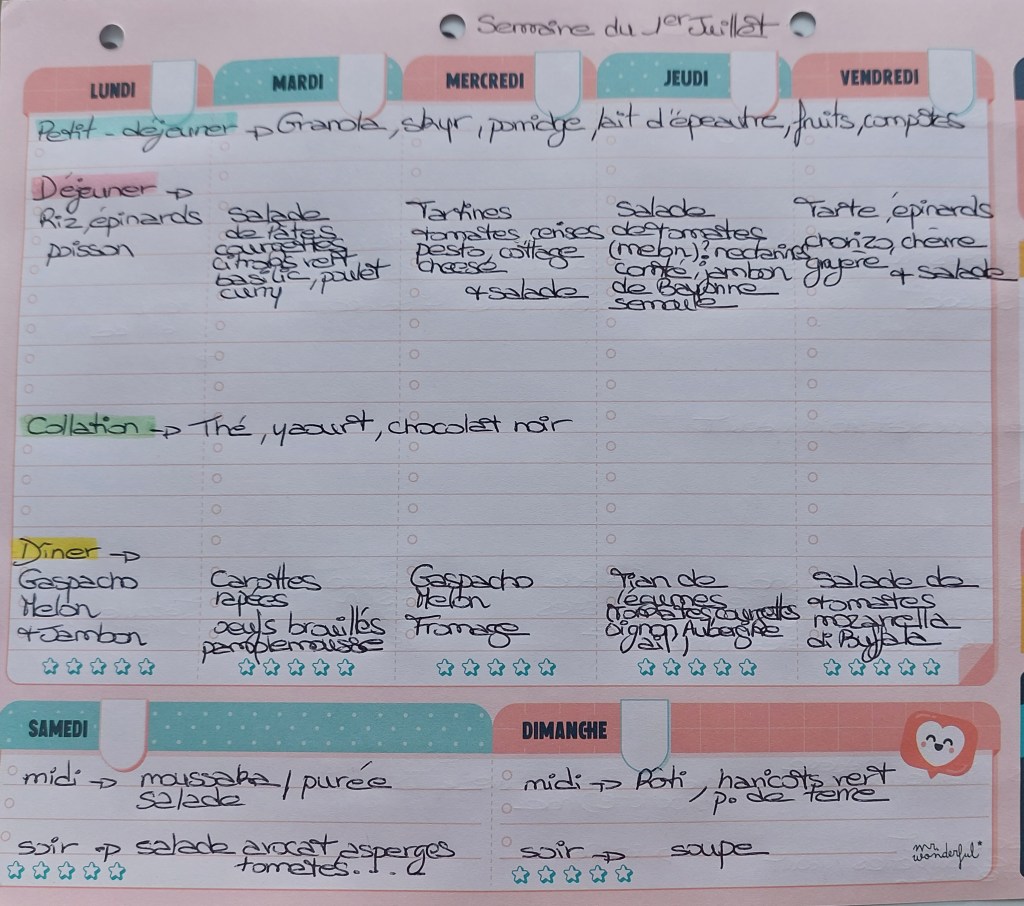 Pour créer mes menus, j’ai un semainier de la marque Mr Wonderful, il est pratique et permet de visualiser ta semaine en un clin d’œil !😉