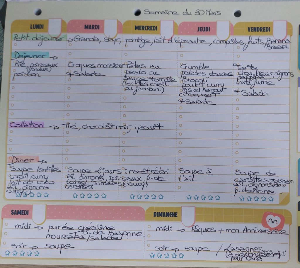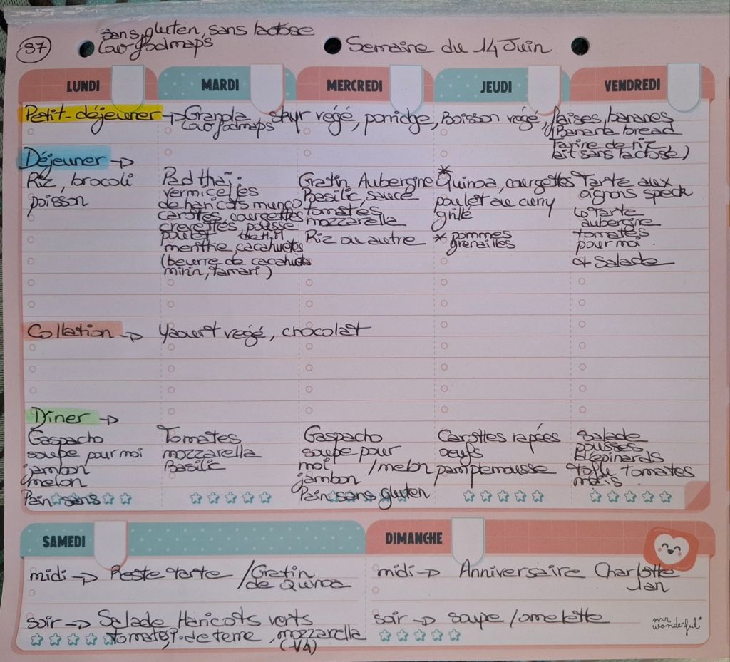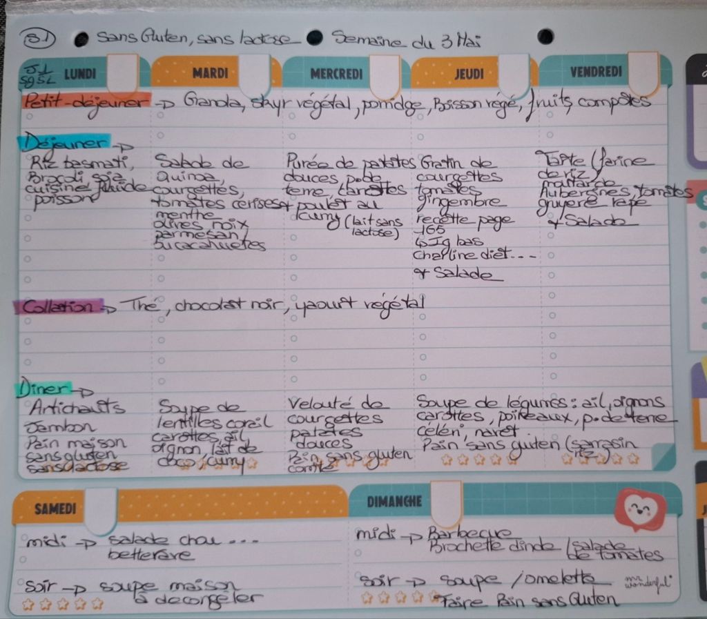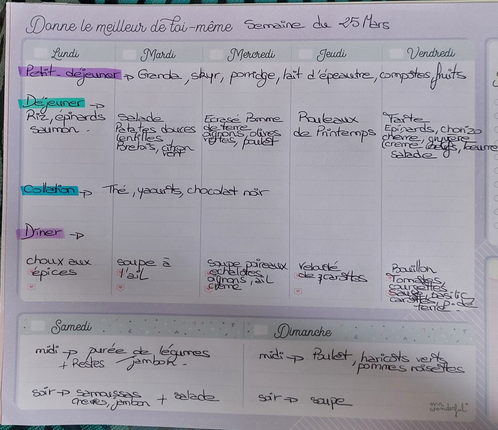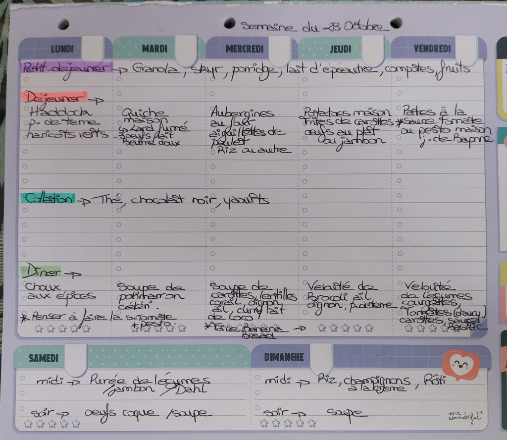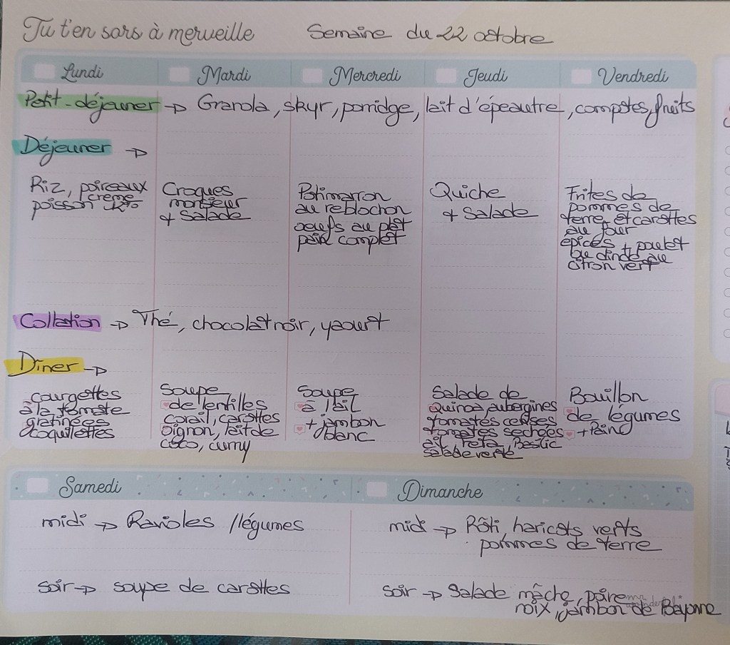 Pour créer mes menus, j’ai un semainier de la marque Mr Wonderful, il est pratique et permet de visualiser ta semaine en un clin d’œil !😉